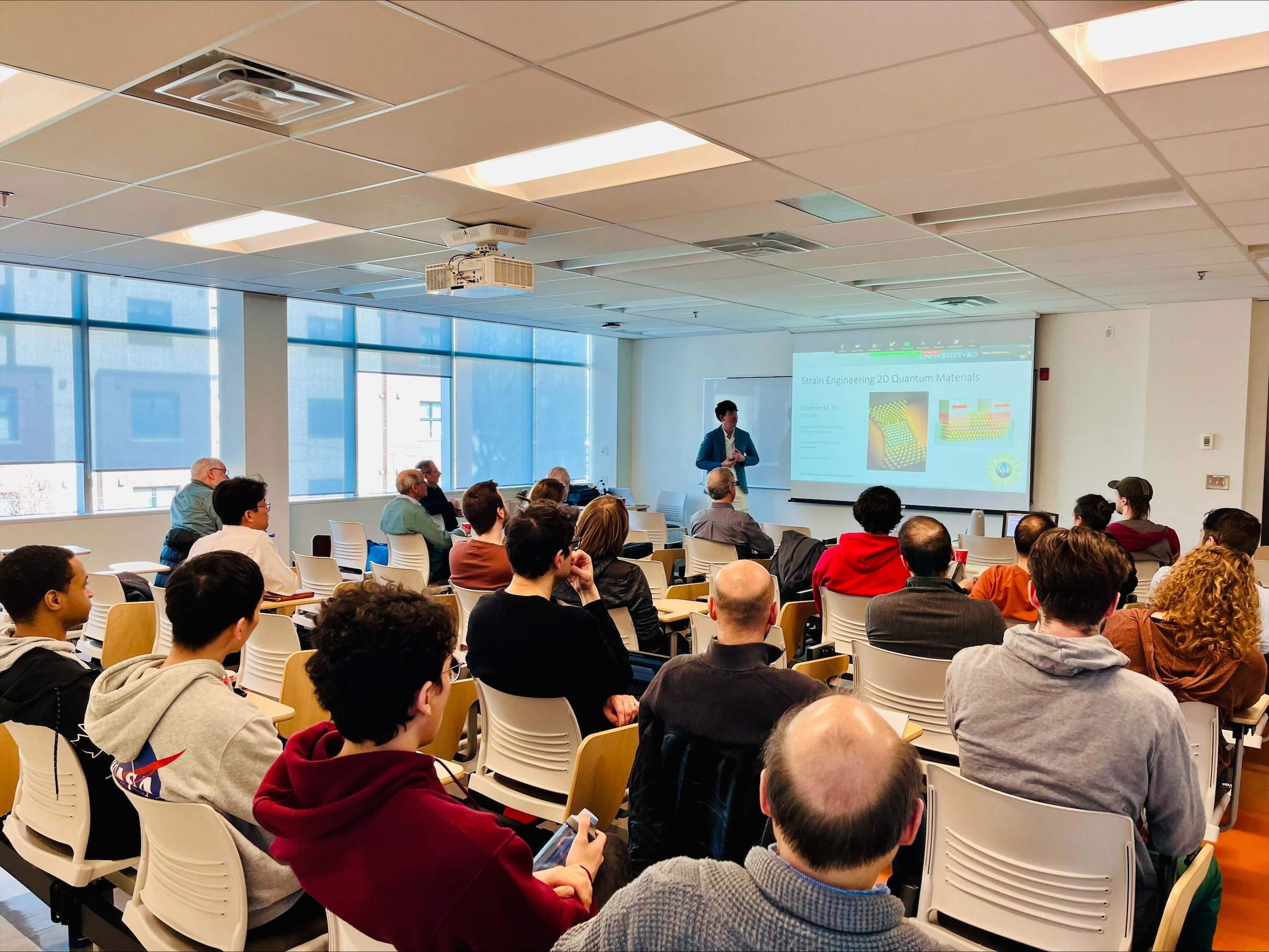 March 21st, 2024![]() | Assistant Professor Stephen M. Wu, Department of Electrical and Computer Engineering, University of Rochester | Strain engineering 2D quantum materials | Strain engineering in electronics has been widely utilized over the last 20 years to enhance carrier mobility in most standard Si-based CMOS fabrication processes. These process-induced strain engineering techniques, engineered from the nanofabrication process itself, are simple, reliable, applied device-to-device, and highly scalable down to the nanometer scale. In this talk, Prof. Stephen M. Wu introduces his group work in exploring how process-induced strain engineering translates to the world of 2D materials, and how this may be applied to engineer quantum materials properties. Control over the strain degree-of-freedom in 2D materials opens new pathways for exploration in engineered quantum materials, since strain in weakly-bonded 2D systems can go far beyond strain-engineering in conventional 3D-bonded materials. This is discussed in the context of two different ongoing projects in Prof. Wu group: 2D straintronic phase-change transistors/memristors, and moiré superlattice engineering with strain in twisted and untwisted bilayer 2D heterostructures. | Read more Video link |